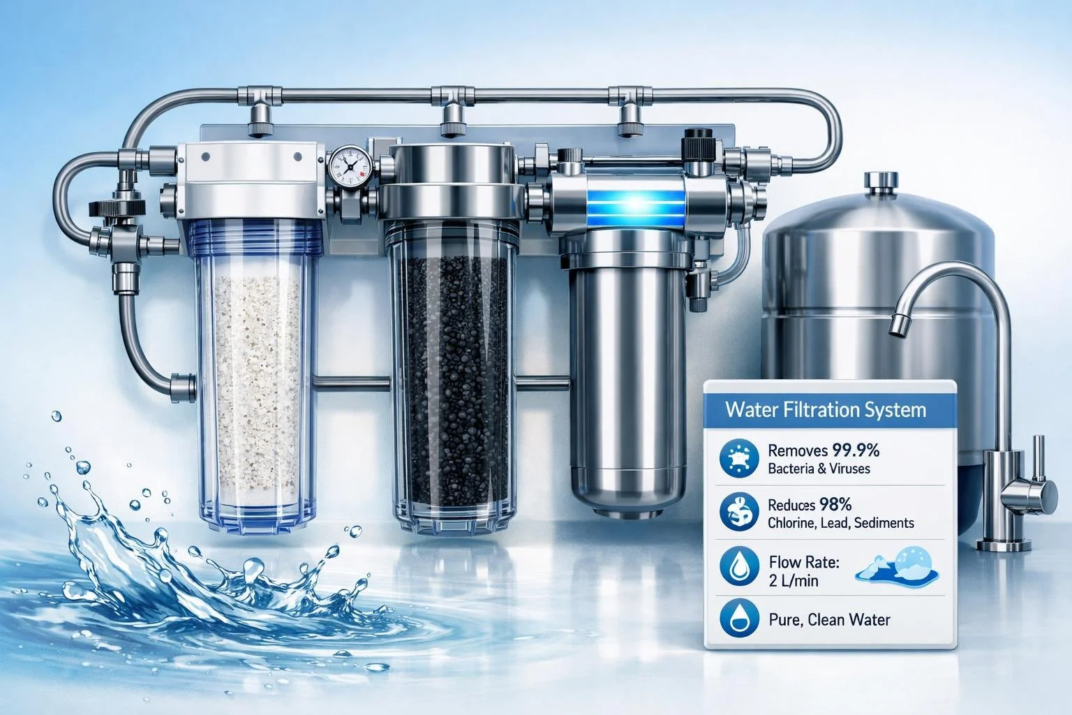 A drinking water filtration system is a point-of-use water treatment solution designed specifically to improve the quality, taste, and safety of water used for drinking and cooking. Unlike whole house systems that treat all water entering your home, drinking water filters are installed at a single location—typically under your kitchen sink—and provide filtered water through a dedicated faucet.